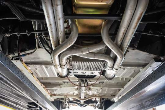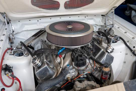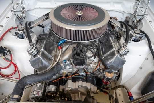 Edelbrock intake manifold, 1150 Holley carb, ATI crank pulley, MSD distributor, Accusump oil accumulator with remote filter, ceramic coated headers, aluminum radiator.