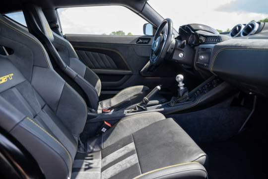 Black leather & Alcantara interior with yellow stitching.
